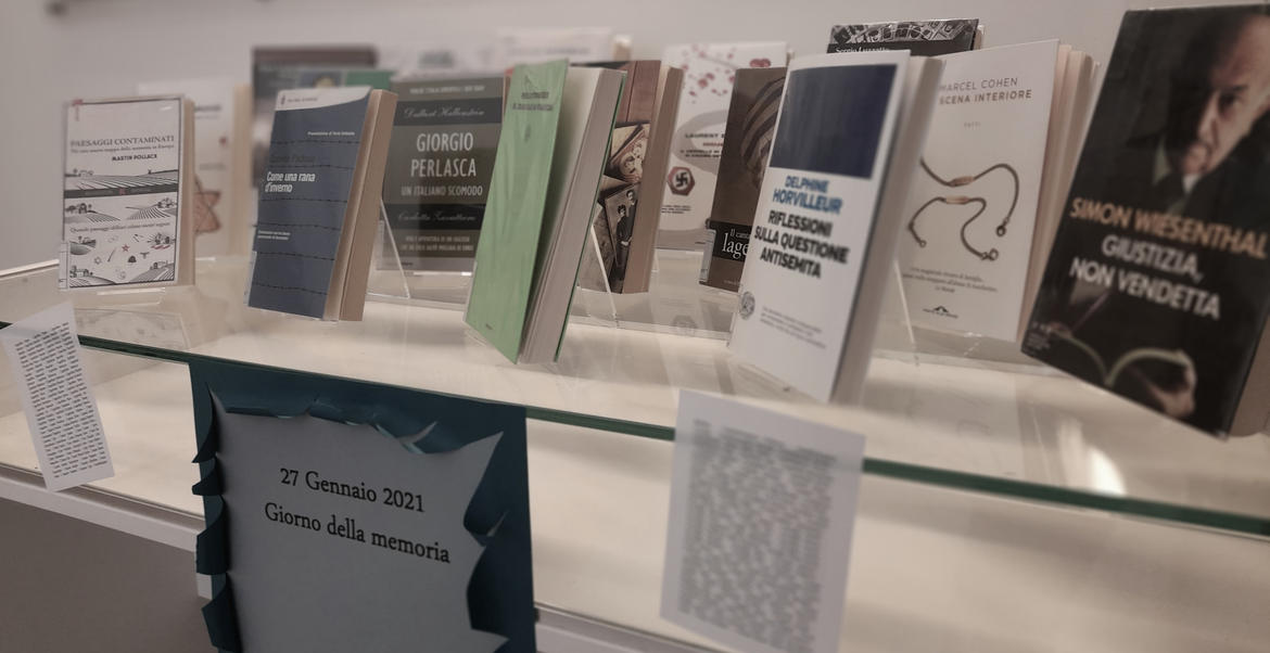 In occasione del Giorno della memoria in biblioteca è stato allestito un percorso bibliografico per adulti e un ulteriore percorso bibliografico per bambini/ragazzi con proposte di letture e approfondimenti per meglio conoscere e per non dimenticare questa triste pagina della storia.