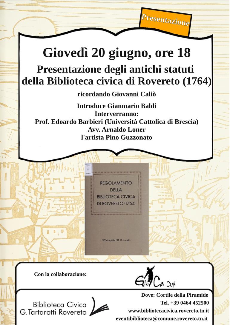Presentazione degli antichi statuti della Biblioteca civica di Rovereto (1764)