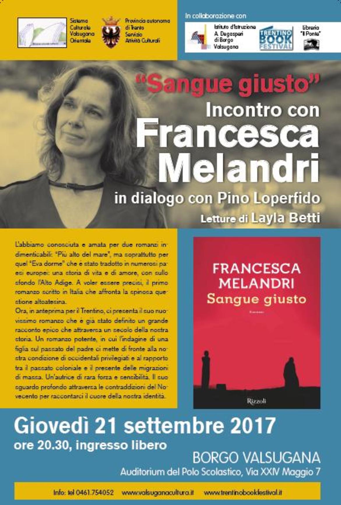 Stiamo parlando di Francesca Melandri che ha scelto Borgo Valsugana e la partnership del Trentino book festival per la prima trentina del suo nuovo libro, edito sempre per Rizzoli.