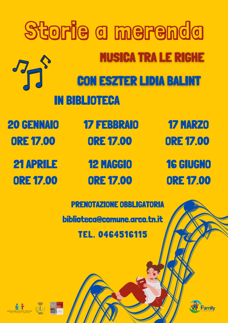 Partecipazione libera con prenotazione obbligatoria chiamando la biblioteca al numero 0464/516115 o scrivendo una mail a biblioteca@comune.arco.tn.it