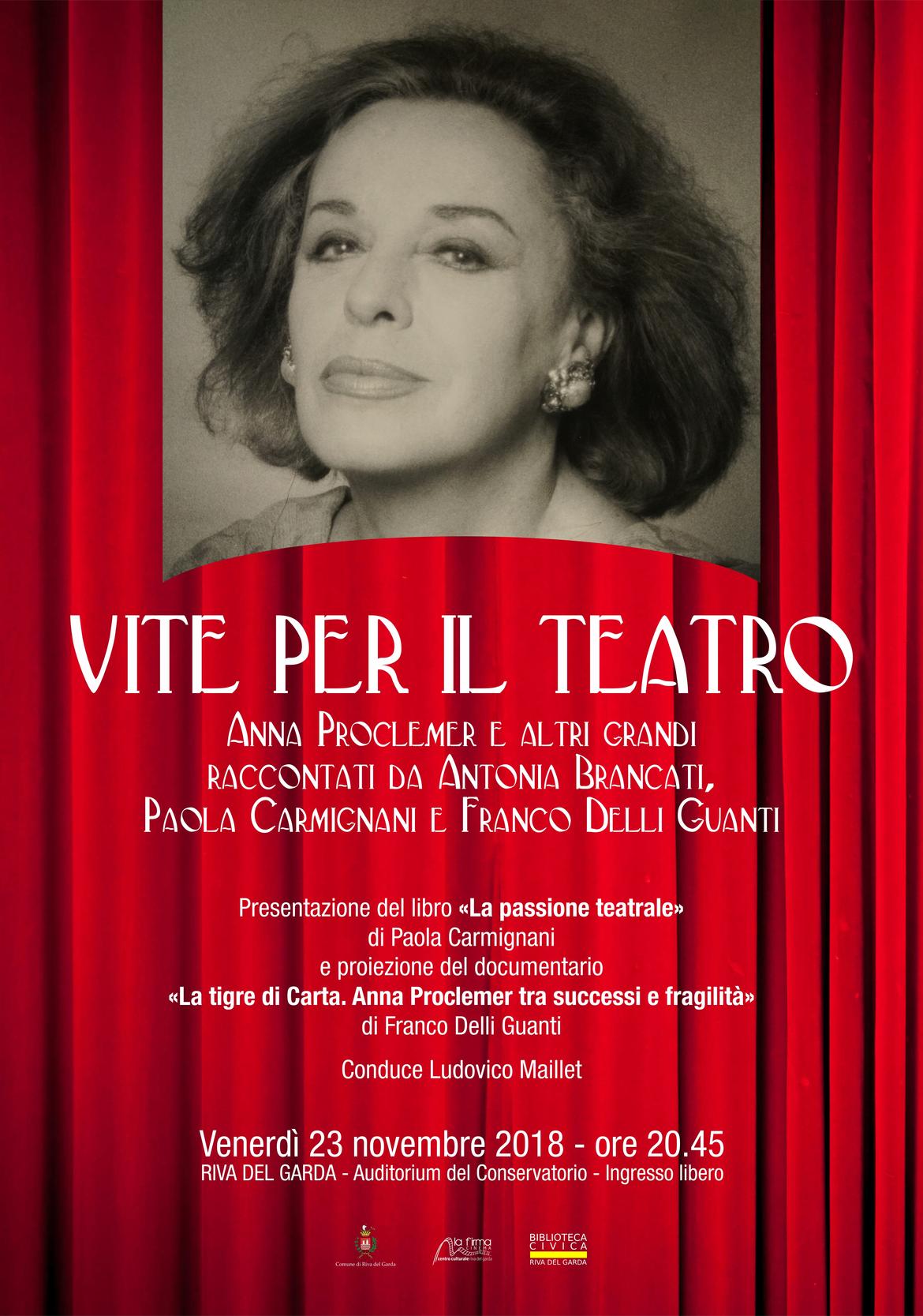 Nel corso della serata verrà presentato il libro di Paola Carmignani La passione teatrale e verrà proiettato il documentario di Franco Delli Guanti dedicato ad Anna Proclemer La tigre di carta. Anna Proclemer tra successi e fragilità.