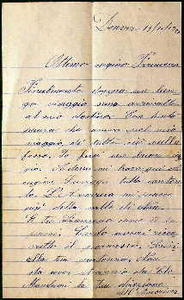 Zamboni SilvioLettera datata 11 novembre 1920. Silvio Zamboni scrive da Denver (Colorado) a Francesco Franch, marito di sua cugina, riferendogli di essere arrivato in America. Da anche dei consigli a Francesco che sta per partire: gli raccomanda di essere pulito al momento dell'imbarco e di avere soldi con se.