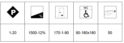 Distanza di 100 cm tra porta e controporta. Platea percorribile lungo tutto il suo perimetro. Accesso al palco con 7 gradini alti 18 cm. Uscita di sicurezza senza barriere. Nei servizi igienici indicati i maniglioni di sostegno sono di tipo verticale e si trovano su entrambi i lati del wc.
