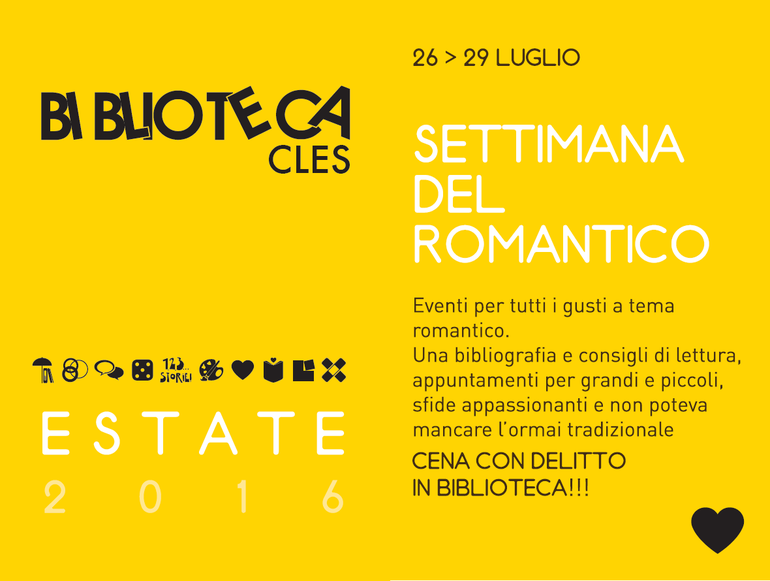 Eventi per tutti i gusti a tema romantico: una bibliografia e consigli di lettura, appuntamenti per grandi e piccoli, sfide appassionanti e… non poteva mancare l’ormai tradizionale cena con delitto in biblioteca!
