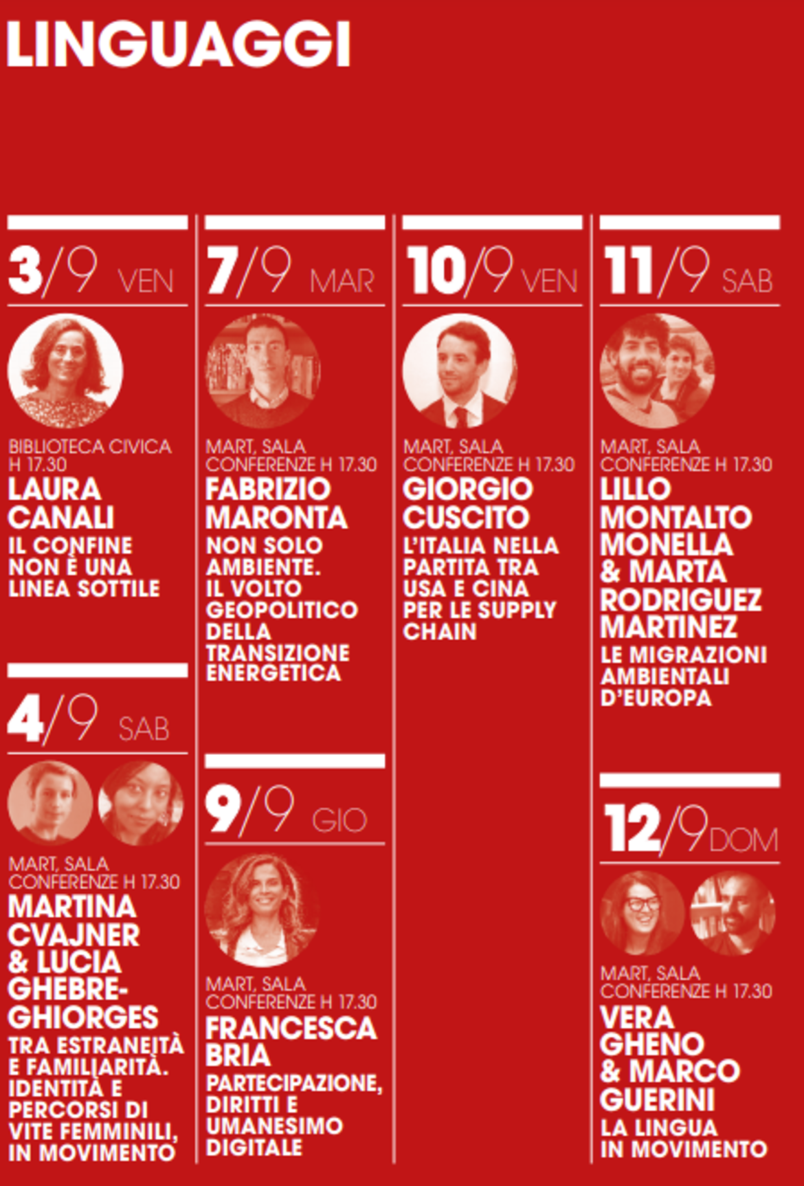 SABATO 11 SETTEMBRE, ORE 17.30, Mart Sala Conferenze