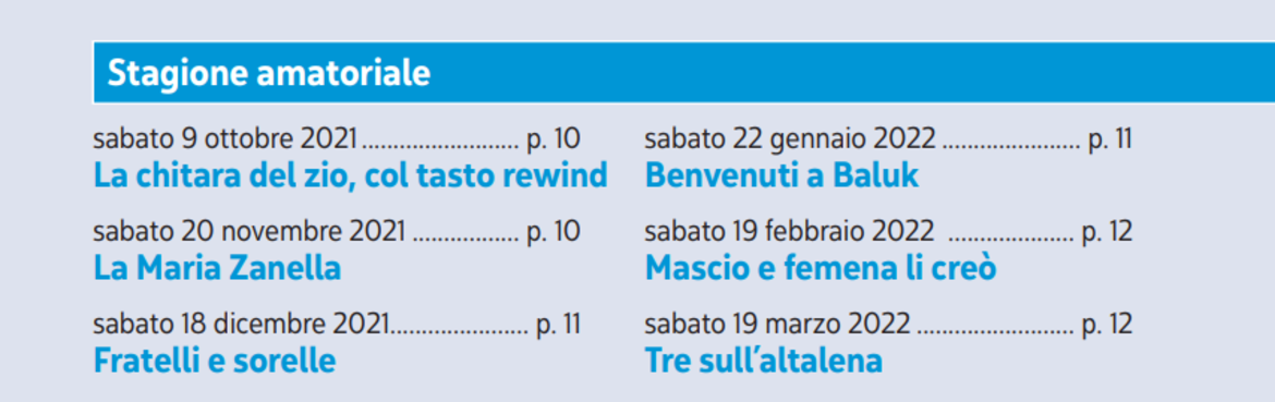 Abbonamento stagione amatoriale (6 spettacoli) 40 € intero / 35 € ridotto