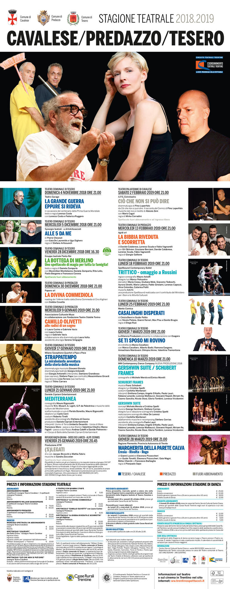 - l’abbonamento Predazzo (35 euro intero, 30 euro ridotto) comprende i 3 spettacoli di Predazzo